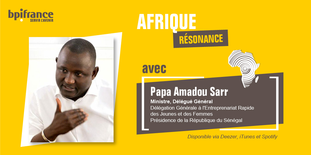 Découvrez ici le troisième épisode d’Afrique Résonance, podcast de BPI France donnant la parole à celles et ceux qui font bouger les lignes économiques et financières du continent africain. Pour ce troisième épisode, Tatiana Mossot reçoit Papa Amadou Sarr, Ministre, Délégué Général à l’Entreprenariat Rapide des Femmes et des Jeunes au cabinet du Président de la République du Sénégal.